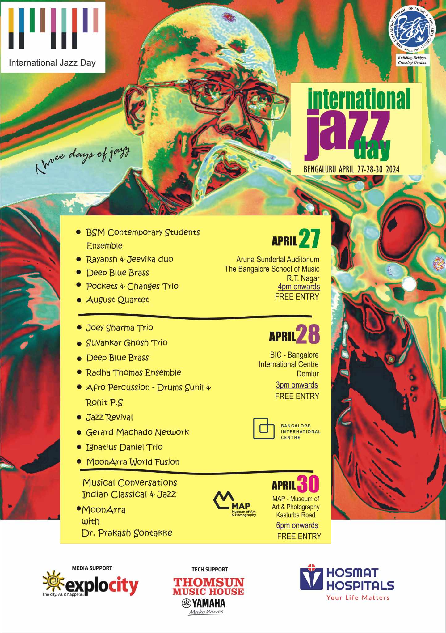Organised by The Bangalore School of Music (BSM), the event will see performances by 14 local bands, covering traditional, contemporary and experimental jazz and American jazz standards.